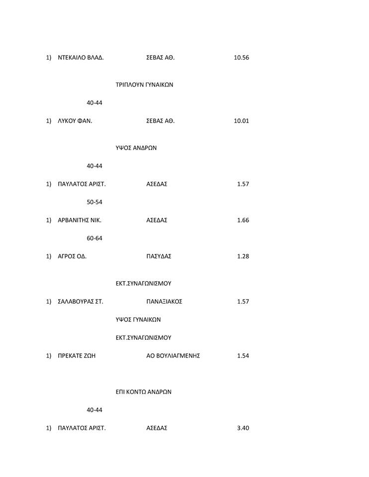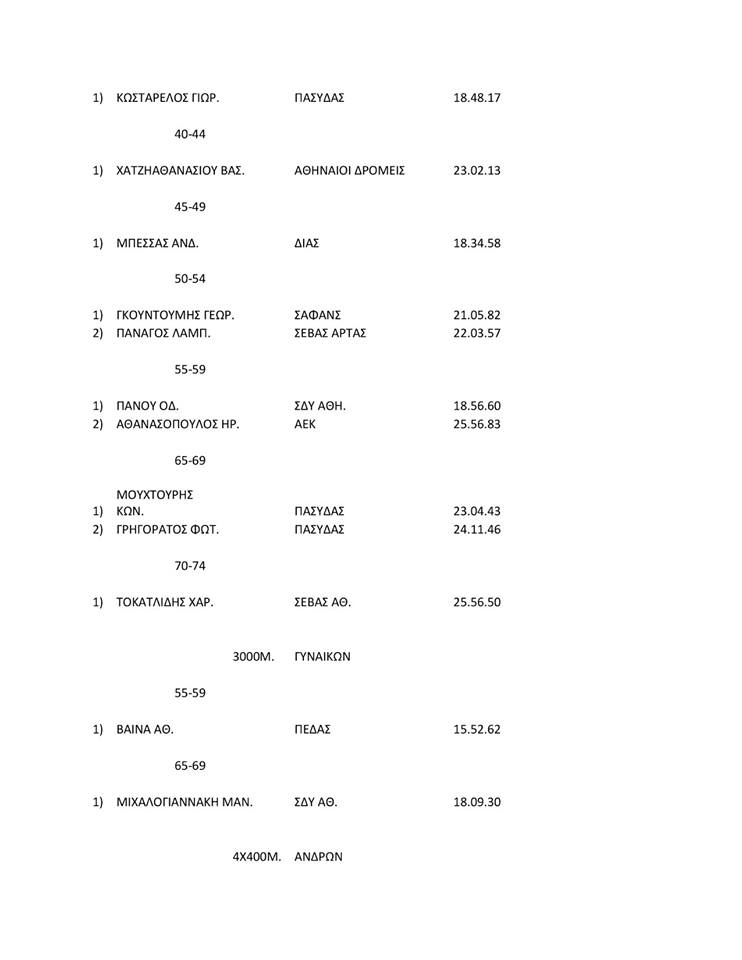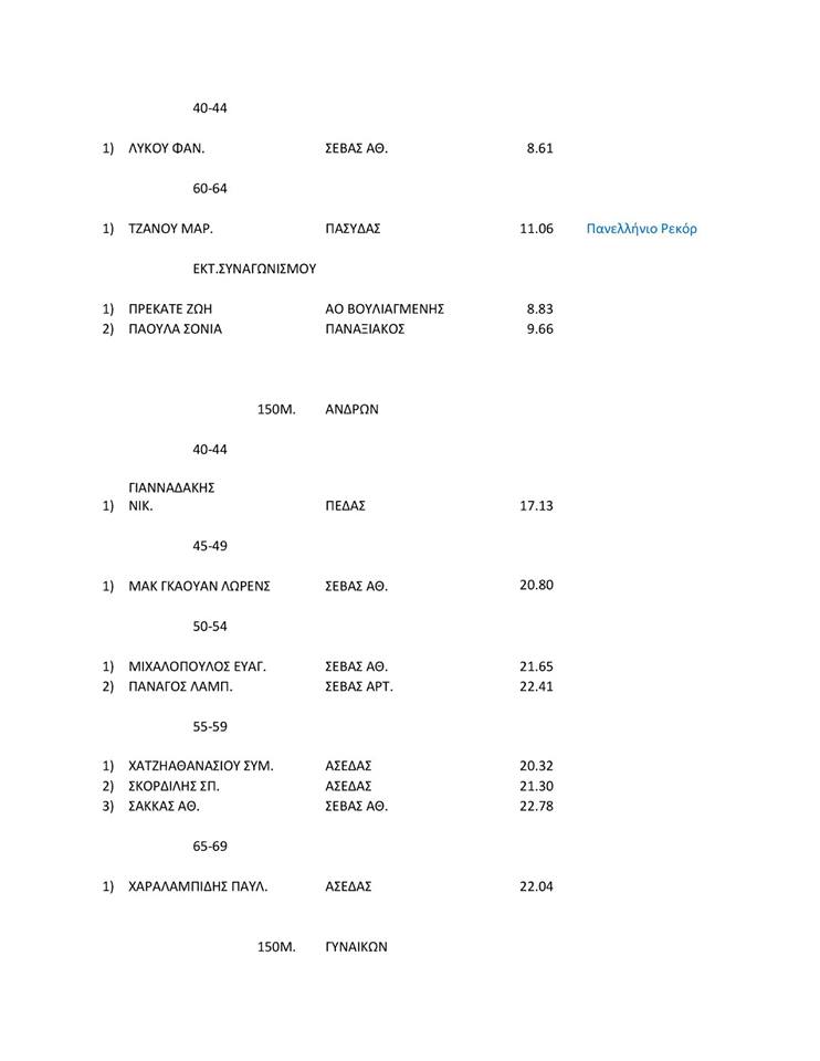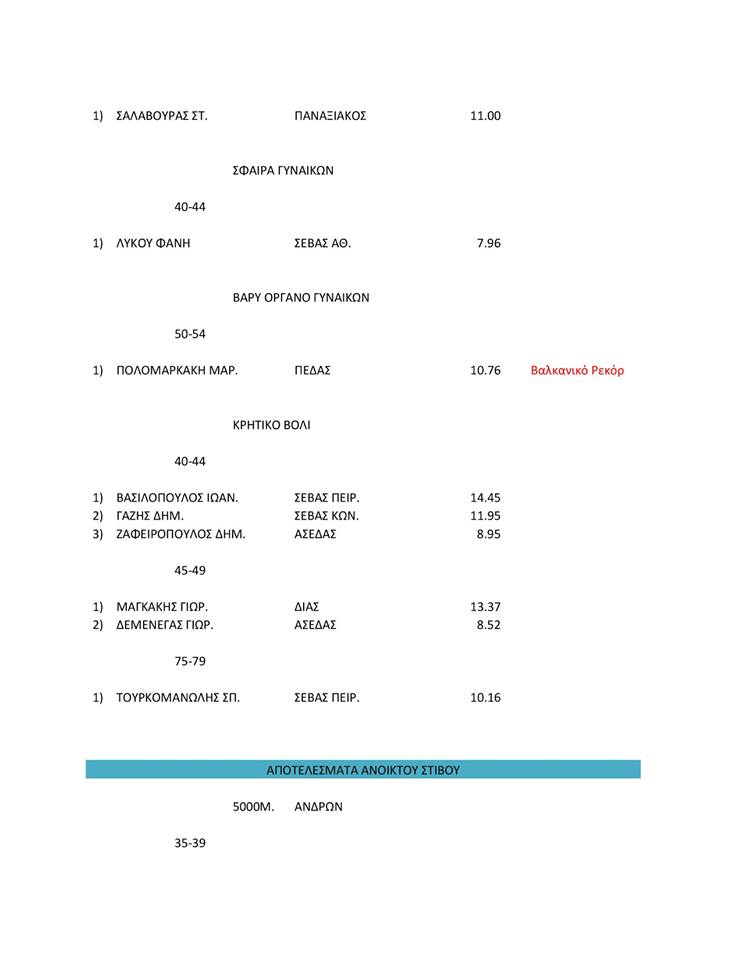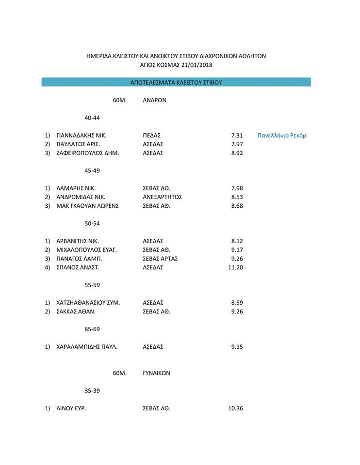 ΑΠΟΤΕΛΕΣΜΑΤΑ ΗΜΕΡΙΔΑΣ ΚΛΕΙΣΤΟΥ ΚΑΙ ΑΝΟΙΧΤΟΥ ΣΤΙΒΟΥ ΔΙΑΧΡΟΝΙΚΩΝ ΑΘΛΗΤΩΝ