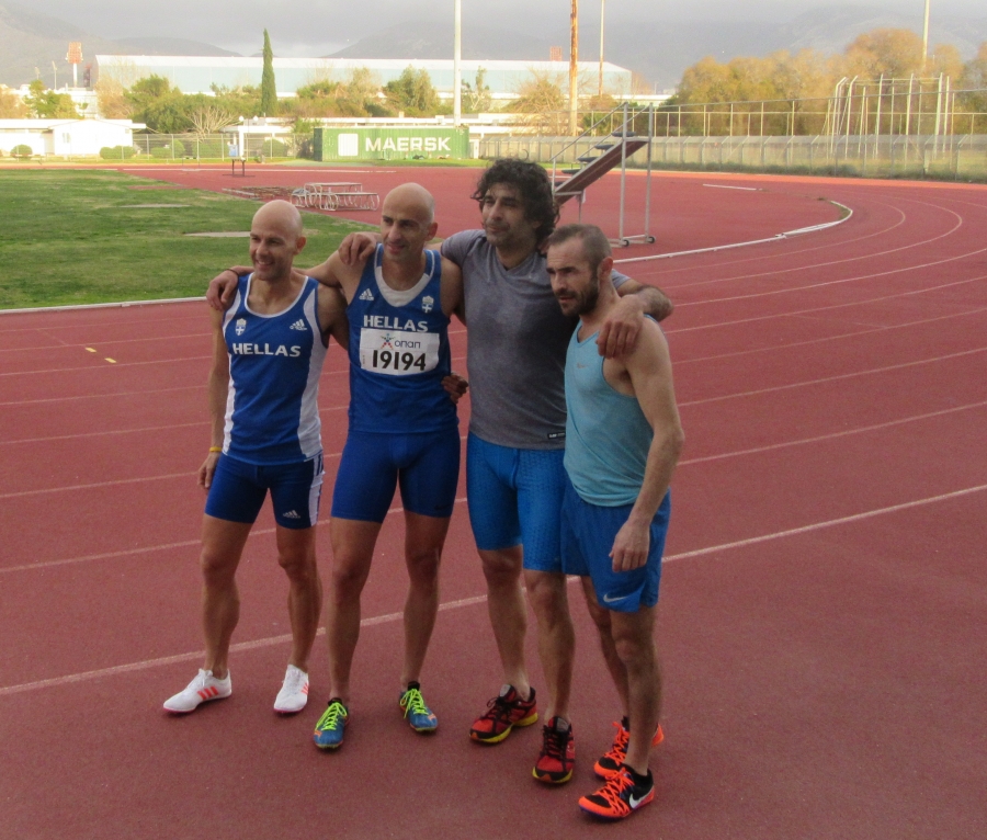 4x400μ., 45+ ετών: Εθνική Ομάδα (Ανδρέας Μπέσσας, Περικλής Σιάμος, Σπύρος Σκορδίλης, Νίκος Κόκκος) με 4.01.45, προηγούμενο της Εθνικής Ομάδας με άλλη σύνθεση με 4.10.34.
