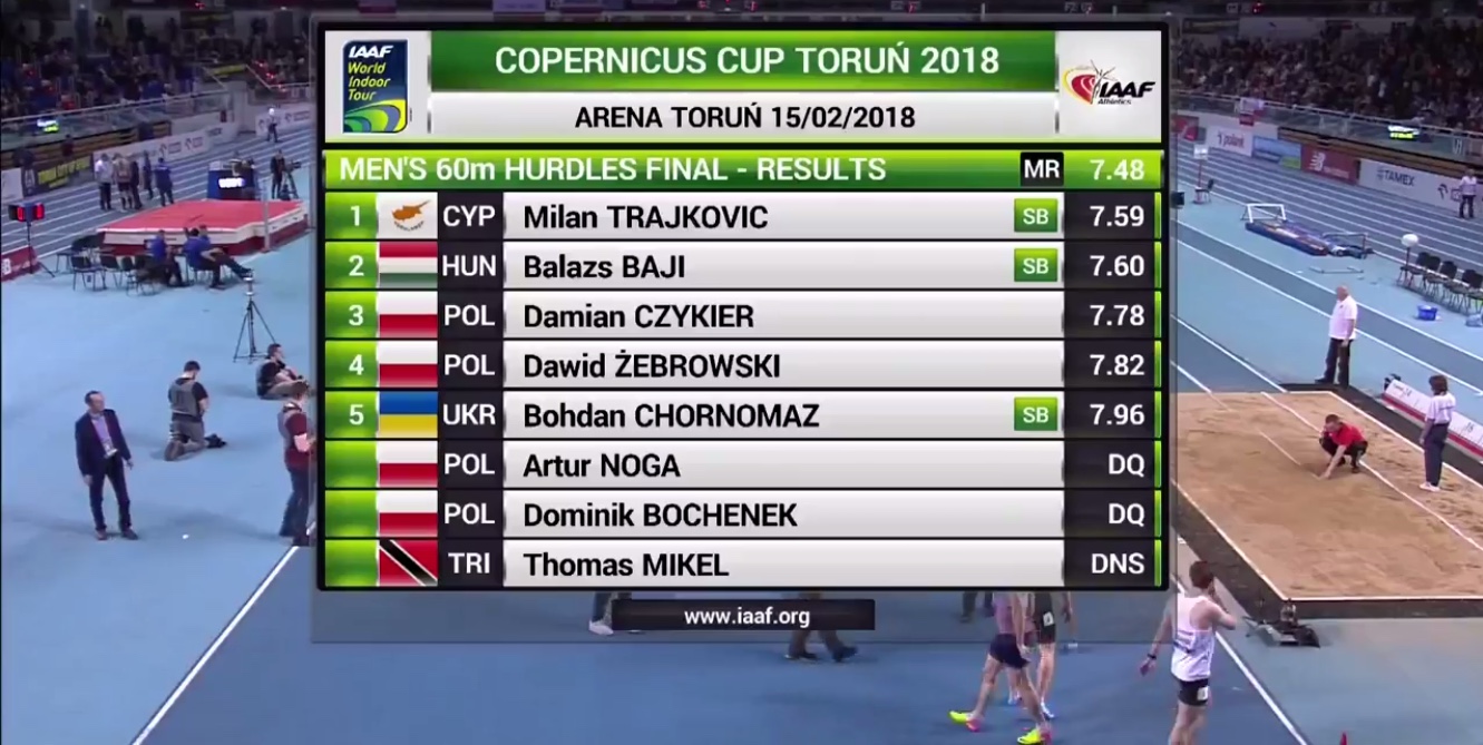 Πολύ καλή εμφάνιση του Τραΐκοβιτς στα 60μ μετ’ εμποδίων στο Copernicus Cup του Τόρουν της Πολωνίας, με χρόνο 7.59. Ο Κύπριος εμποδιστής ξεκίνησε πολύ δυνατά την κούρσα και διατήρησε την ταχύτητά του σε όλο τον αγώνα, ενώ δεν τον πτόησε η κίτρινη κάρτα που έλαβε από τον κριτή στην πρώτη από τις δύο άκυρες εκκινήσεις.