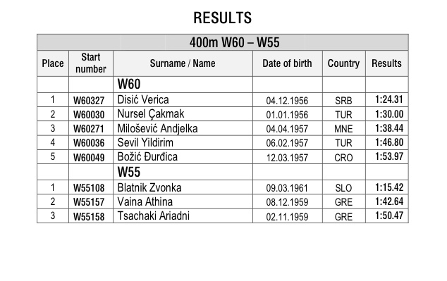 400μ. Ηλικ.κατ. 55-59 1.42.64 Αθηνά Βαινά