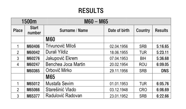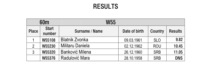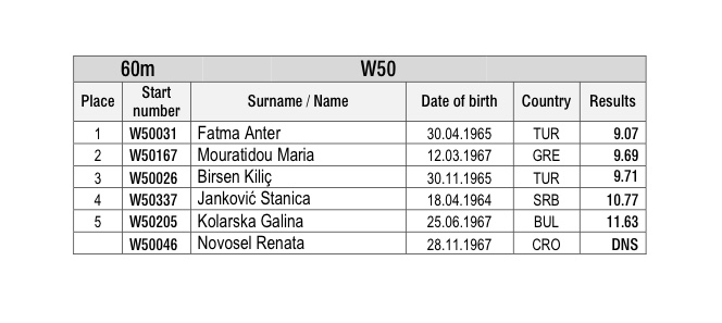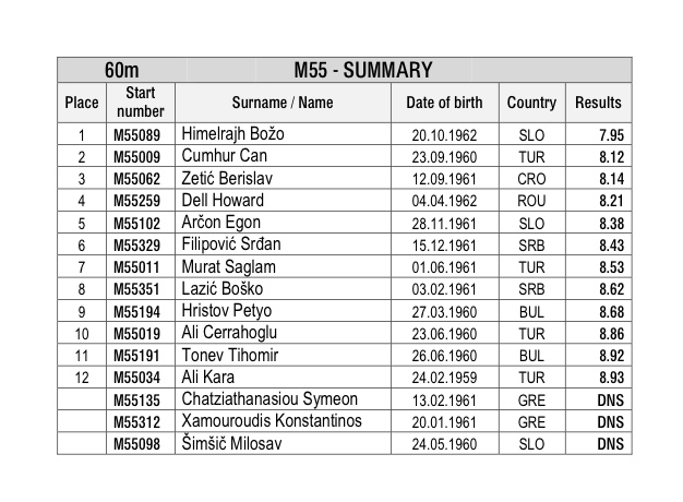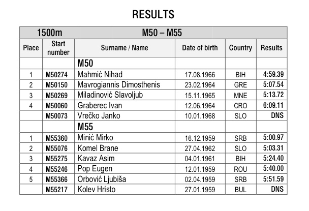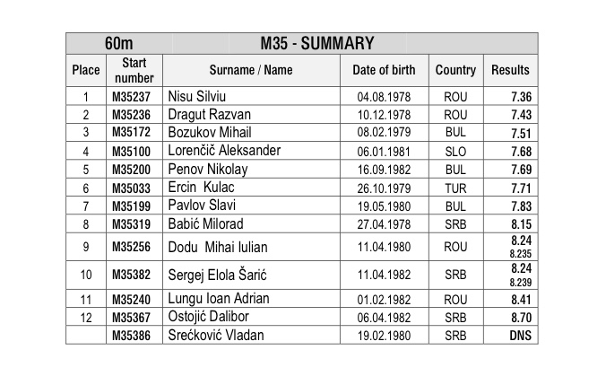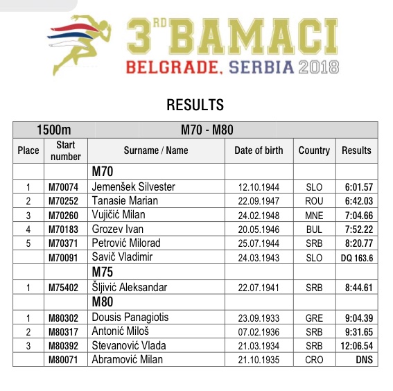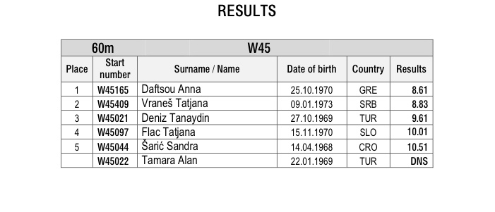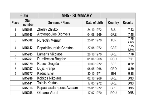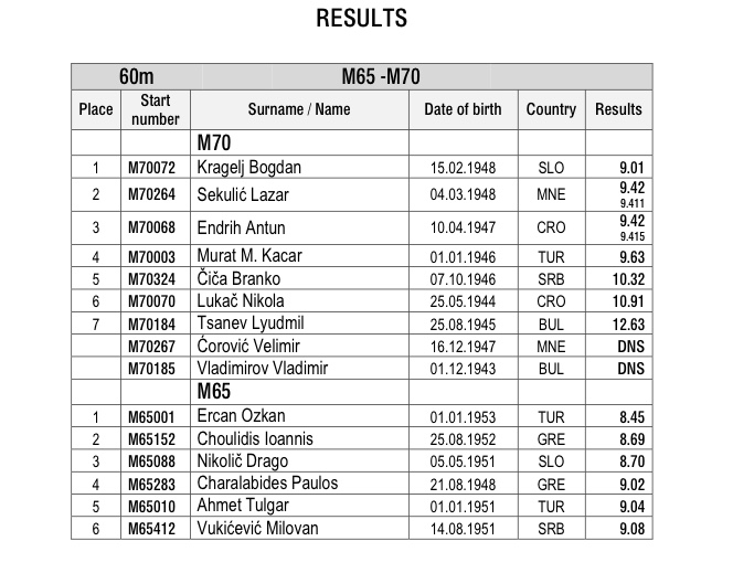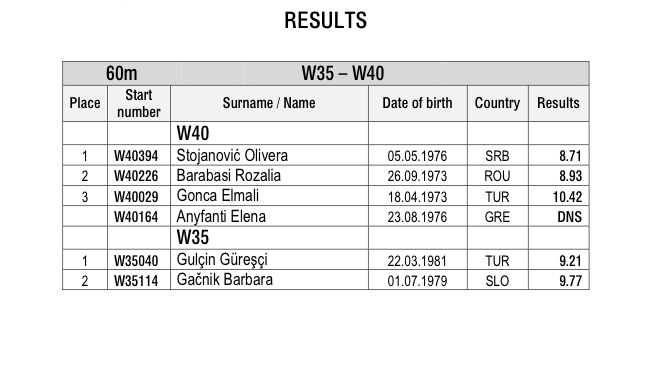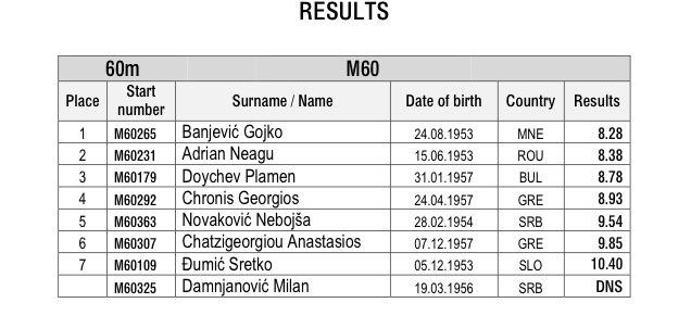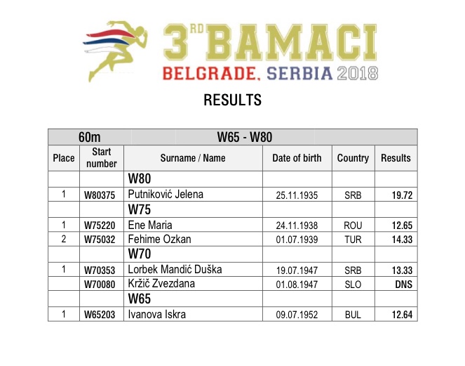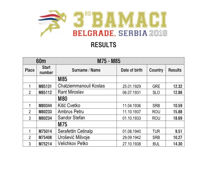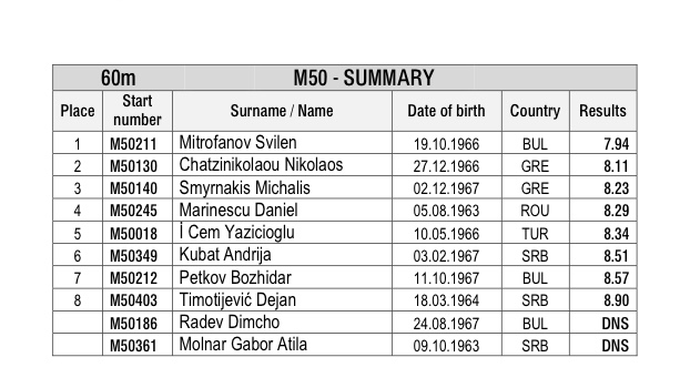 Αποτελέσματα 1ης ημέρας Αποτελέσματα 1ης ημέρας Βαλκανικού Πρωταθλήματος κλειστού στίβου Διαχρονικών Αθλητών 2018