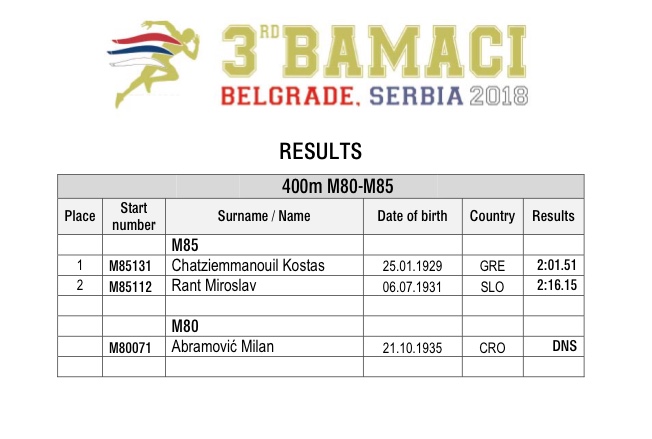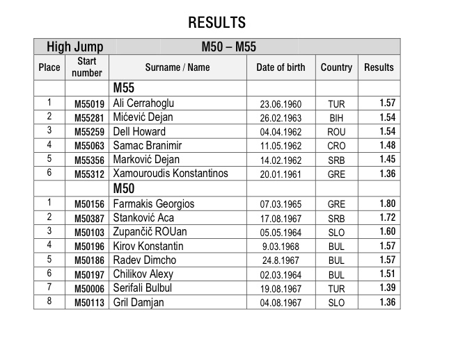 Αποτελέσματα 2ης ημέρας Αποτελέσματα 2ης ημέρας Βαλκανικού Πρωταθλήματος κλειστού στίβου Διαχρονικών Αθλητών 2018