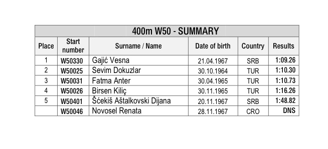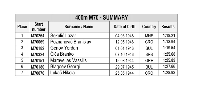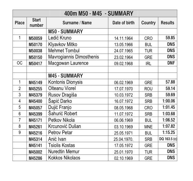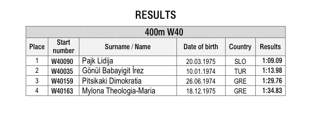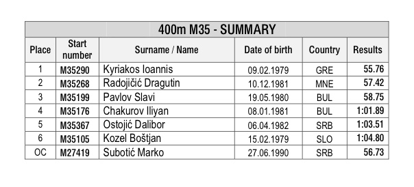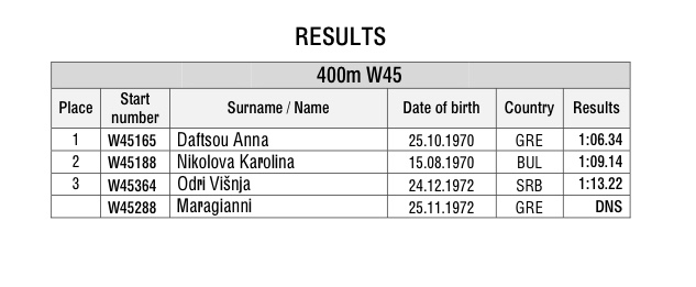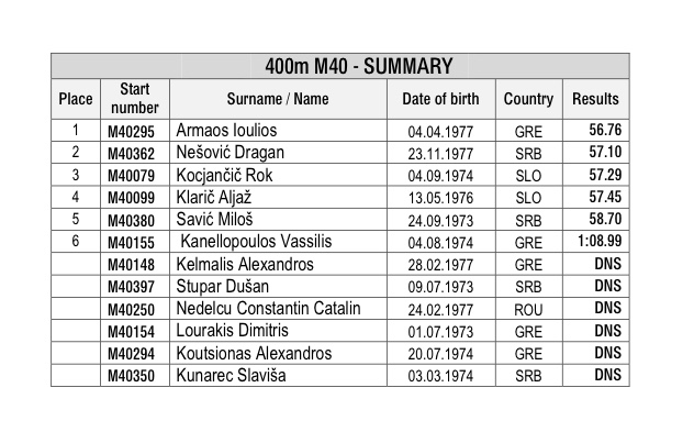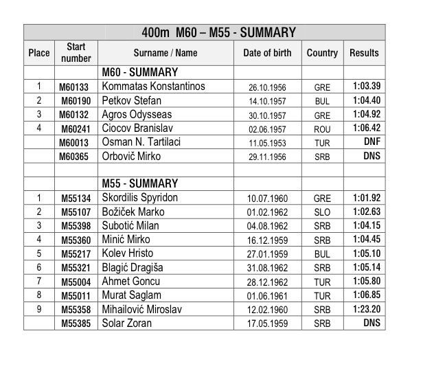 Παρακάτω μπορείτε να δείτε τα αναλυτικά αποτελέσματα των 400μ ανδρών και γυναικών ανα ηλικιακή κατηγορία :