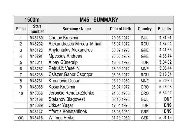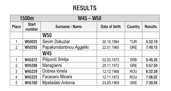 1500μ. Ηλικ.κατ. 45-49 5.57.50 Χριστίνα Μαραγιάννη