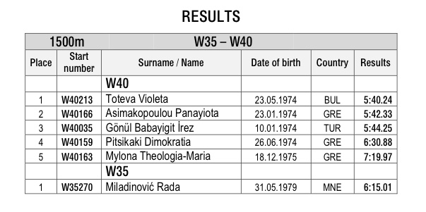 1500μ. Ηλικ.κατ. 40-44 5.42.33 Γιώτα Ασημακοπούλου