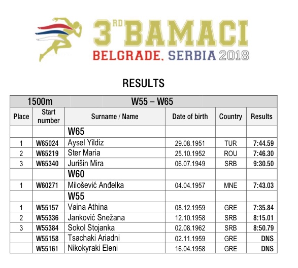 1500μ. Ηλικ.κατ. 55-59 7.35.84 Αθηνά Βαινά