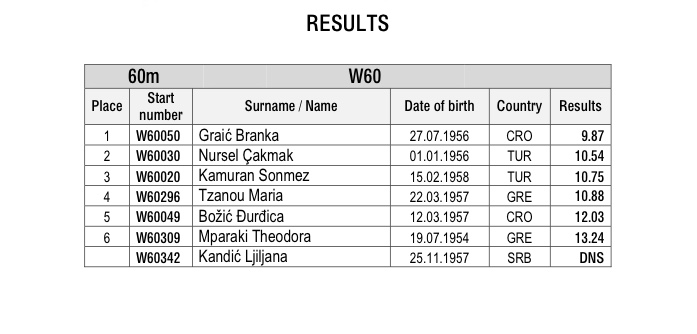 Παρακατω μπορείτε να δείτε τα αποτελέσματα ανα ηλικιακή κατηγορία για τα αγωνίσματα των 60μ :