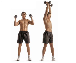 Σταθείτε όρθιοι και κρατήστε ένα ζευγάρι αλτήρων με τους αγκώνες σας να είναι λίγο πιο ανοικτοί από τους ώμους σας και οι παλάμες σας να «κοιτούν» η μια την άλλη. Στρίβοντας προς τα αριστερά, σηκώστε τους αλτήρες πάνω από το κεφάλι σας. Επιστρέψτε στην αρχική σας θέση και επαναλάβετε το ίδιο προς τα δεξιά. Έτσι, έχετε κάνει μια επανάληψη.