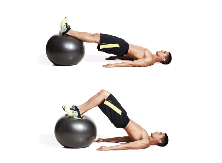 Παραλλαγές : Για να την κάνετε πιο εύκολη, κάντε τα πρώτα δύο βήματα, χωρίς να φέρετε τη μπάλα προς τους γοφούς σας (leg curl). Για να την κάνετε πιο δύσκολη, εκτελέστε την άσκηση με μόνο ένα πόδι, κρατώντας το άλλο στον αέρα πάνω από το γοφό.